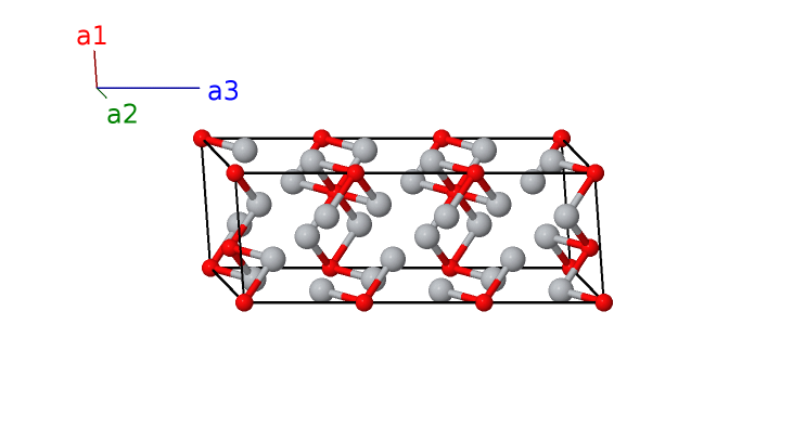 | $\mathbf{B_{2}}$ | = | $\frac{1}{3} \, \mathbf{a}_{1}+\frac{2}{3} \, \mathbf{a}_{2}$ | = | $\frac{1}{2}a \,\mathbf{\hat{x}}+\frac{\sqrt{3}}{6}a \,\mathbf{\hat{y}}$ | (1c) | O II |