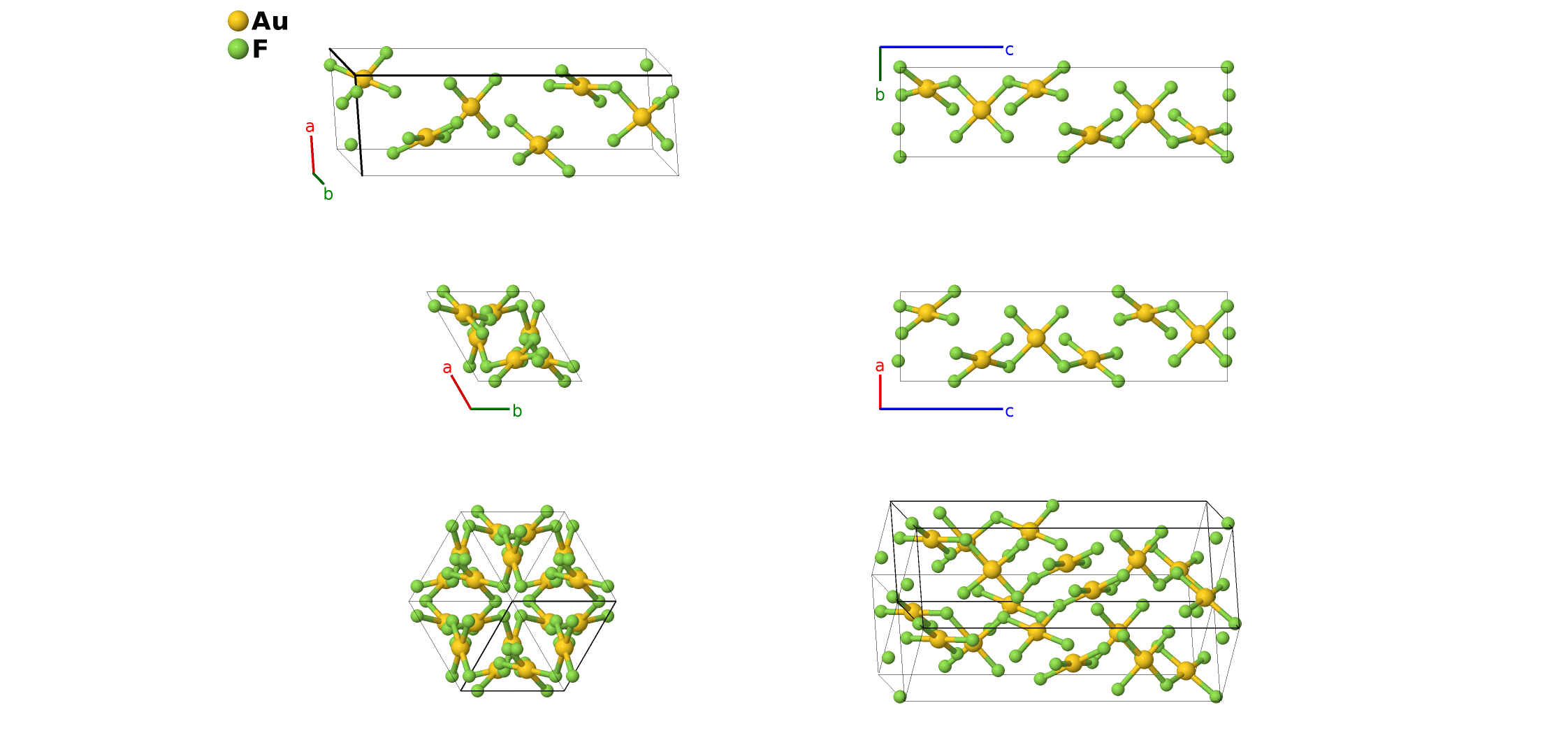 | $\mathbf{B_{9}}$ | = | $x_{2} \, \mathbf{a}_{1}- x_{2} \, \mathbf{a}_{2}+\frac{1}{12} \, \mathbf{a}_{3}$ | = | $- \sqrt{3}a x_{2} \,\mathbf{\hat{y}}+\frac{1}{12}c \,\mathbf{\hat{z}}$ | (6b) | Au I |
