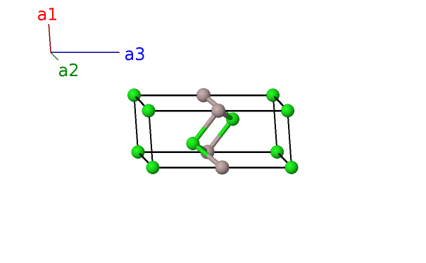 | $\mathbf{B_{4}}$ | = | $\frac{2}{3} \, \mathbf{a}_{1}+\frac{1}{3} \, \mathbf{a}_{2}- z_{3} \, \mathbf{a}_{3}$ | = | $\frac{1}{2}a \,\mathbf{\hat{x}}- \frac{\sqrt{3}}{6}a \,\mathbf{\hat{y}}- c z_{3} \,\mathbf{\hat{z}}$ | (2d) | Cl II |