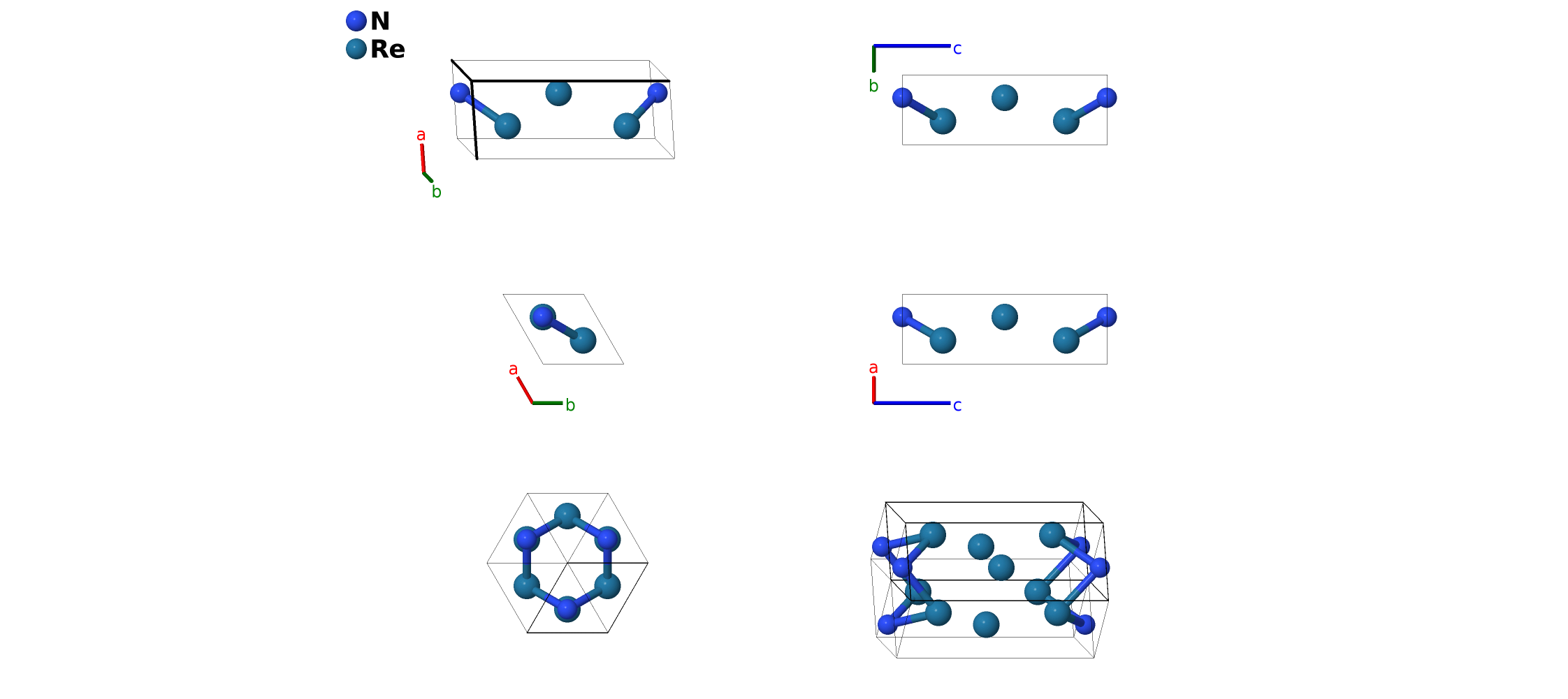 | $\mathbf{B_{3}}$ | = | $\frac{1}{3} \, \mathbf{a}_{1}+\frac{2}{3} \, \mathbf{a}_{2}+z_{3} \, \mathbf{a}_{3}$ | = | $\frac{1}{2}a \,\mathbf{\hat{x}}+\frac{\sqrt{3}}{6}a \,\mathbf{\hat{y}}+c z_{3} \,\mathbf{\hat{z}}$ | (2h) | Re II |