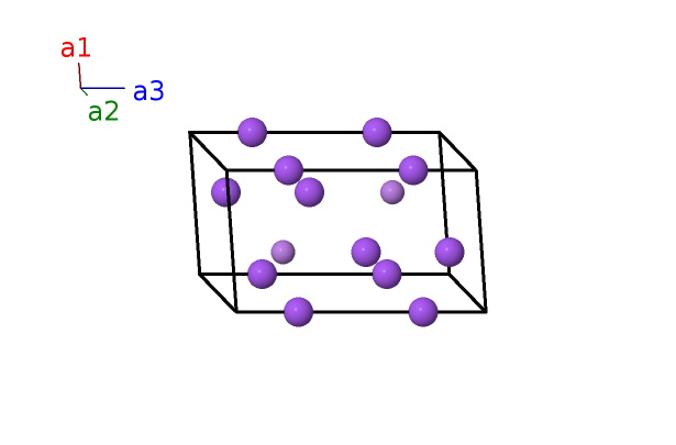 | $\mathbf{B_{5}}$ | = | $\frac{1}{3} \, \mathbf{a}_{1}+\frac{2}{3} \, \mathbf{a}_{2}+z_{3} \, \mathbf{a}_{3}$ | = | $\frac{1}{2}a \,\mathbf{\hat{x}}+\frac{\sqrt{3}}{6}a \,\mathbf{\hat{y}}+c z_{3} \,\mathbf{\hat{z}}$ | (4f) | Na II |