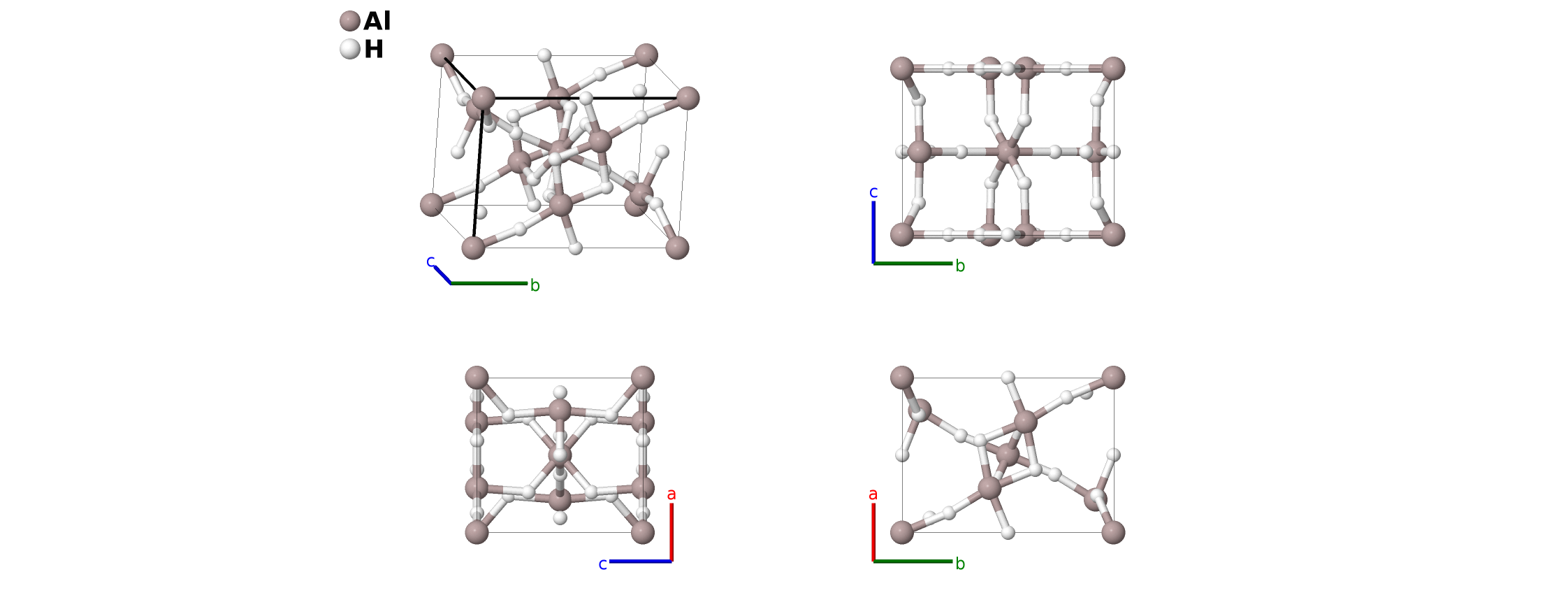 | $\mathbf{B_{12}}$ | = | $\left(x_{4} + \frac{1}{2}\right) \, \mathbf{a}_{1}- \left(y_{4} - \frac{1}{2}\right) \, \mathbf{a}_{2}+\frac{1}{2} \, \mathbf{a}_{3}$ | = | $a \left(x_{4} + \frac{1}{2}\right) \,\mathbf{\hat{x}}- b \left(y_{4} - \frac{1}{2}\right) \,\mathbf{\hat{y}}+\frac{1}{2}c \,\mathbf{\hat{z}}$ | (4g) | H II |