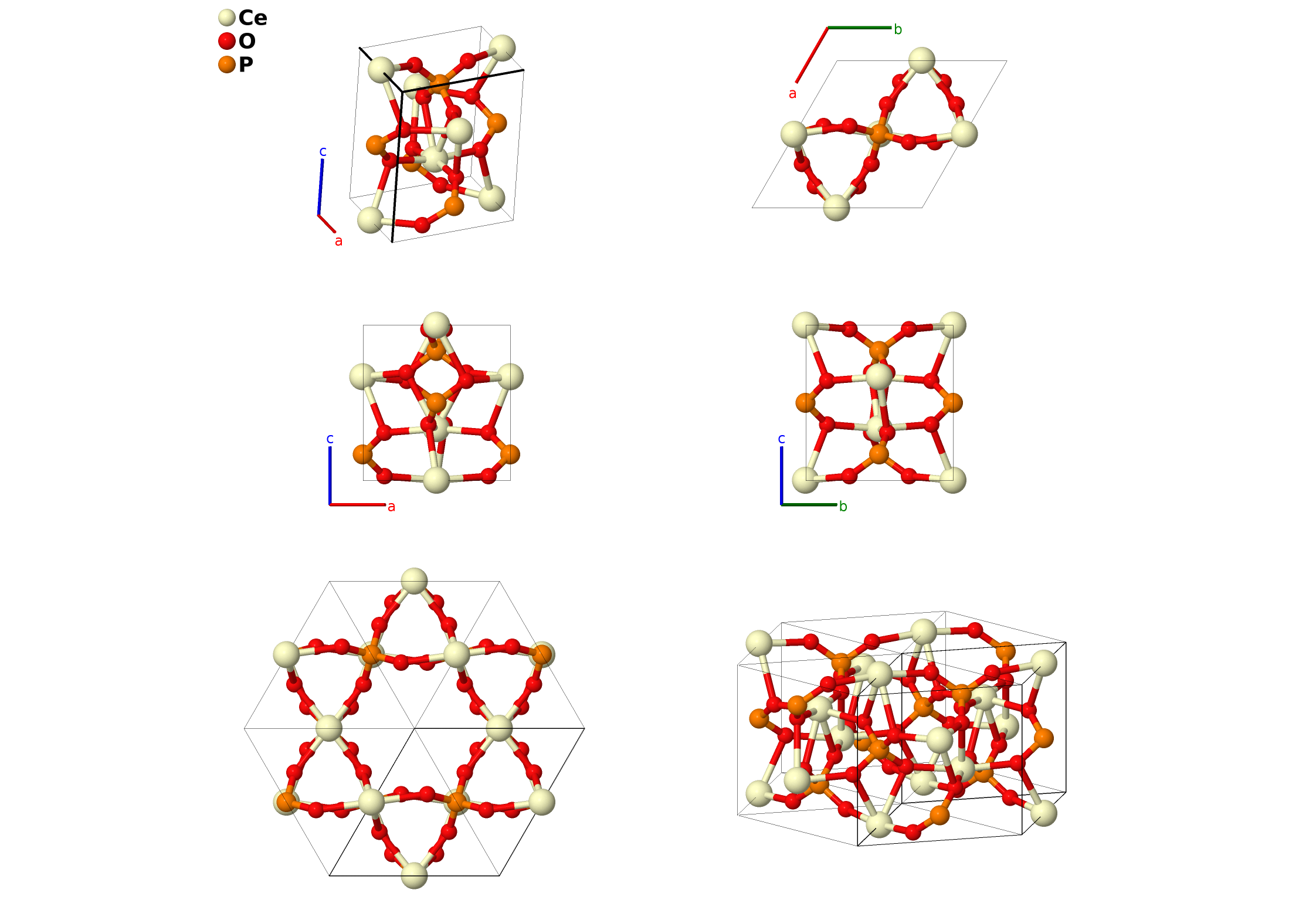 | $\mathbf{B_{3}}$ | = | $\frac{1}{2} \, \mathbf{a}_{1}+\frac{1}{2} \, \mathbf{a}_{2}+\frac{1}{3} \, \mathbf{a}_{3}$ | = | $\frac{1}{2}a \,\mathbf{\hat{x}}+\frac{1}{3}c \,\mathbf{\hat{z}}$ | (3c) | Ce I |