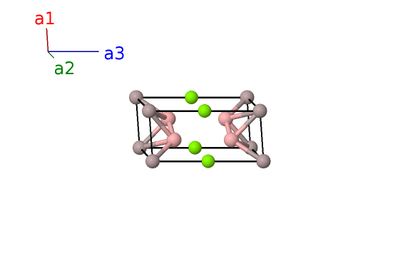 | $\mathbf{B_{3}}$ | = | $\frac{1}{3} \, \mathbf{a}_{1}+\frac{2}{3} \, \mathbf{a}_{2}+z_{3} \, \mathbf{a}_{3}$ | = | $\frac{1}{2}a \,\mathbf{\hat{x}}+\frac{\sqrt{3}}{6}a \,\mathbf{\hat{y}}+c z_{3} \,\mathbf{\hat{z}}$ | (4h) | B I |