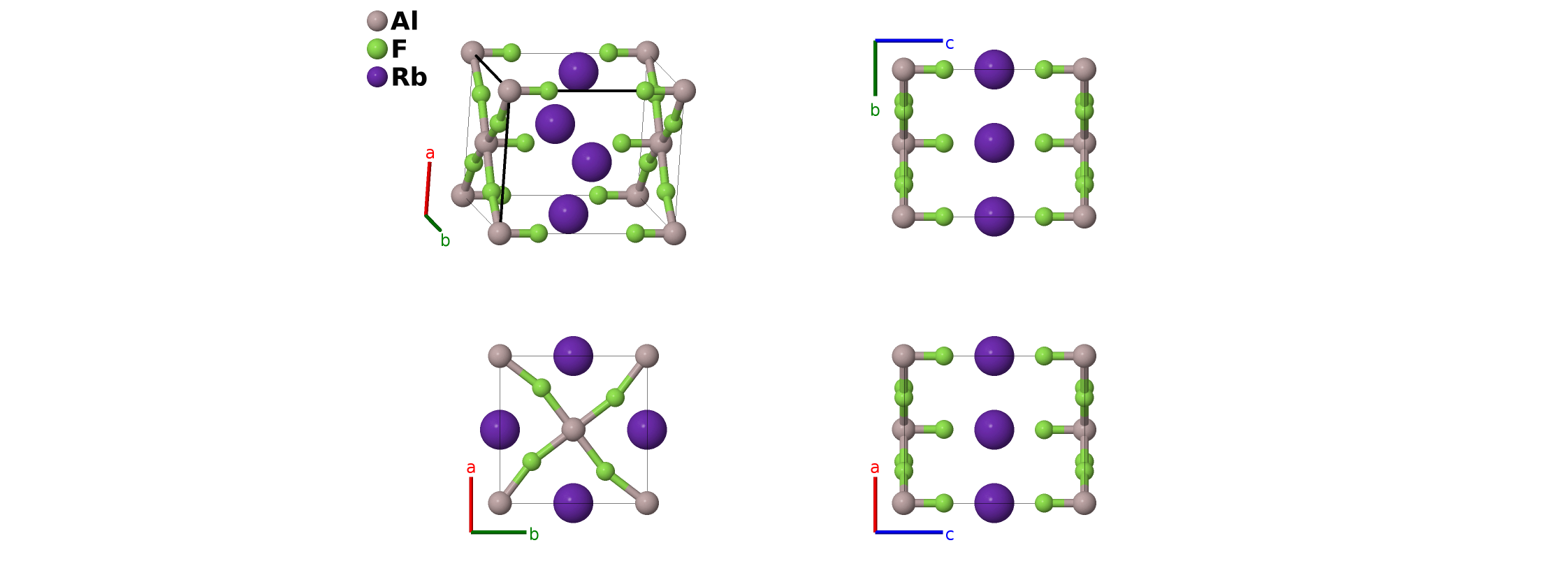 | $\mathbf{B_{3}}$ | = | $\frac{1}{2} \, \mathbf{a}_{2}+\frac{1}{2} \, \mathbf{a}_{3}$ | = | $\frac{1}{2}a \,\mathbf{\hat{y}}+\frac{1}{2}c \,\mathbf{\hat{z}}$ | (2c) | Rb I |