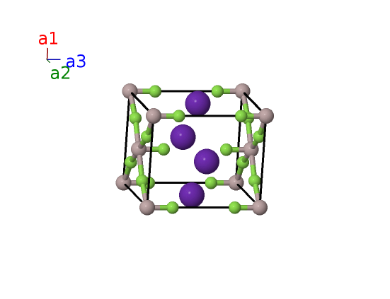 | $\mathbf{B_{2}}$ | = | $\frac{1}{2} \, \mathbf{a}_{1}+\frac{1}{2} \, \mathbf{a}_{2}$ | = | $\frac{1}{2}a \,\mathbf{\hat{x}}+\frac{1}{2}a \,\mathbf{\hat{y}}$ | (2a) | Al I |