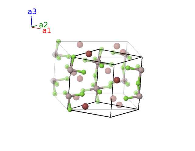 | $\mathbf{B_{14}}$ | = | $- \left(x_{6} - y_{6}\right) \, \mathbf{a}_{1}- \left(x_{6} + y_{6}\right) \, \mathbf{a}_{2}+\left(z_{6} + \frac{1}{2}\right) \, \mathbf{a}_{3}$ | = | $- a x_{6} \,\mathbf{\hat{x}}- b y_{6} \,\mathbf{\hat{y}}+c \left(z_{6} + \frac{1}{2}\right) \,\mathbf{\hat{z}}$ | (8c) | Tl I |