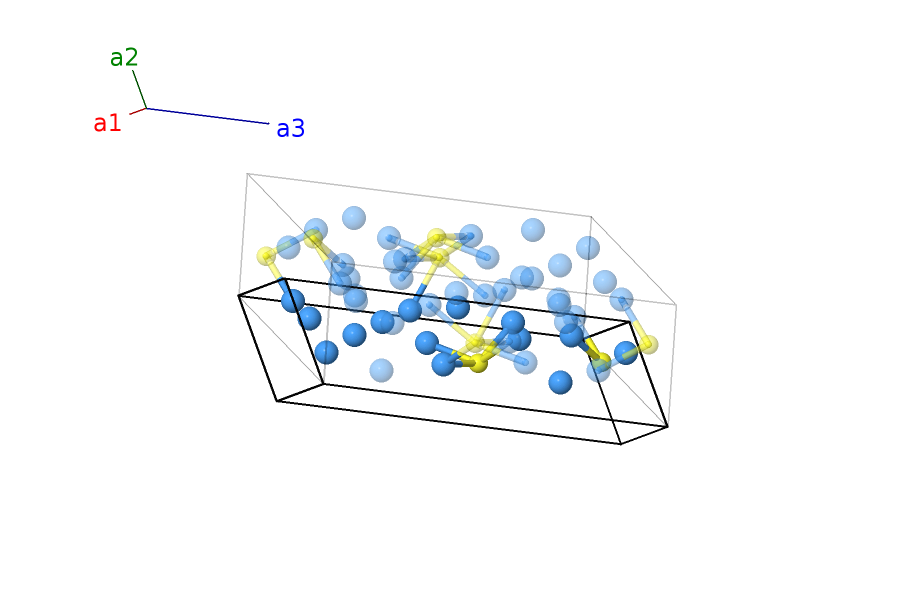 | $\mathbf{B_{1}}$ | = | $\left(x_{1} - y_{1}\right) \, \mathbf{a}_{1}+\left(x_{1} + y_{1}\right) \, \mathbf{a}_{2}+z_{1} \, \mathbf{a}_{3}$ | = | $\left(a x_{1} + c z_{1} \cos{\beta}\right) \,\mathbf{\hat{x}}+b y_{1} \,\mathbf{\hat{y}}+c z_{1} \sin{\beta} \,\mathbf{\hat{z}}$ | (8f) | S I |