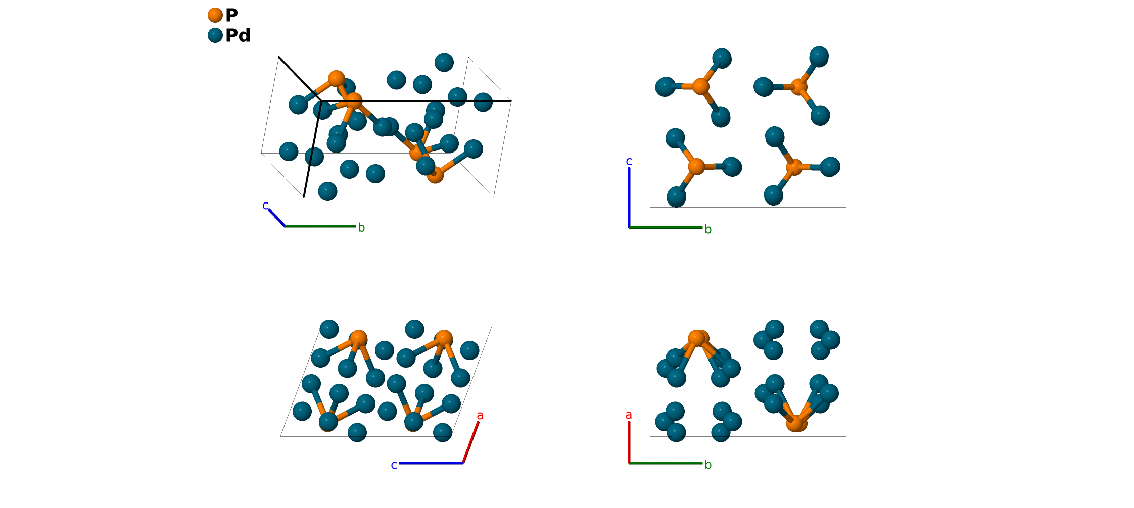 | $\mathbf{B_{10}}$ | = | $- x_{3} \, \mathbf{a}_{1}+\left(y_{3} + \frac{1}{2}\right) \, \mathbf{a}_{2}- \left(z_{3} - \frac{1}{2}\right) \, \mathbf{a}_{3}$ | = | $- \left(a x_{3} + c \left(z_{3} - \frac{1}{2}\right) \cos{\beta}\right) \,\mathbf{\hat{x}}+b \left(y_{3} + \frac{1}{2}\right) \,\mathbf{\hat{y}}- c \left(z_{3} - \frac{1}{2}\right) \sin{\beta} \,\mathbf{\hat{z}}$ | (4e) | Pd II |