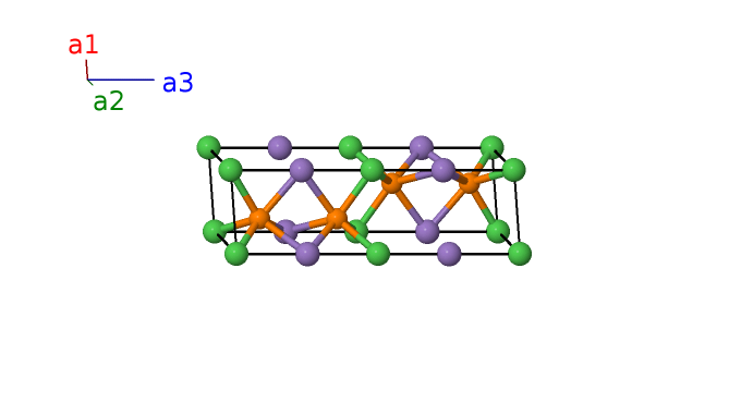 \[ \begin{array}{ccc} \mathbf{a_{1}}&=&\frac{1}{2}a \,\mathbf{\hat{x}}- \frac{\sqrt{3}}{2}a \,\mathbf{\hat{y}}\\\mathbf{a_{2}}&=&\frac{1}{2}a \,\mathbf{\hat{x}}+\frac{\sqrt{3}}{2}a \,\mathbf{\hat{y}}\\\mathbf{a_{3}}&=&c \,\mathbf{\hat{z}} \end{array}\]