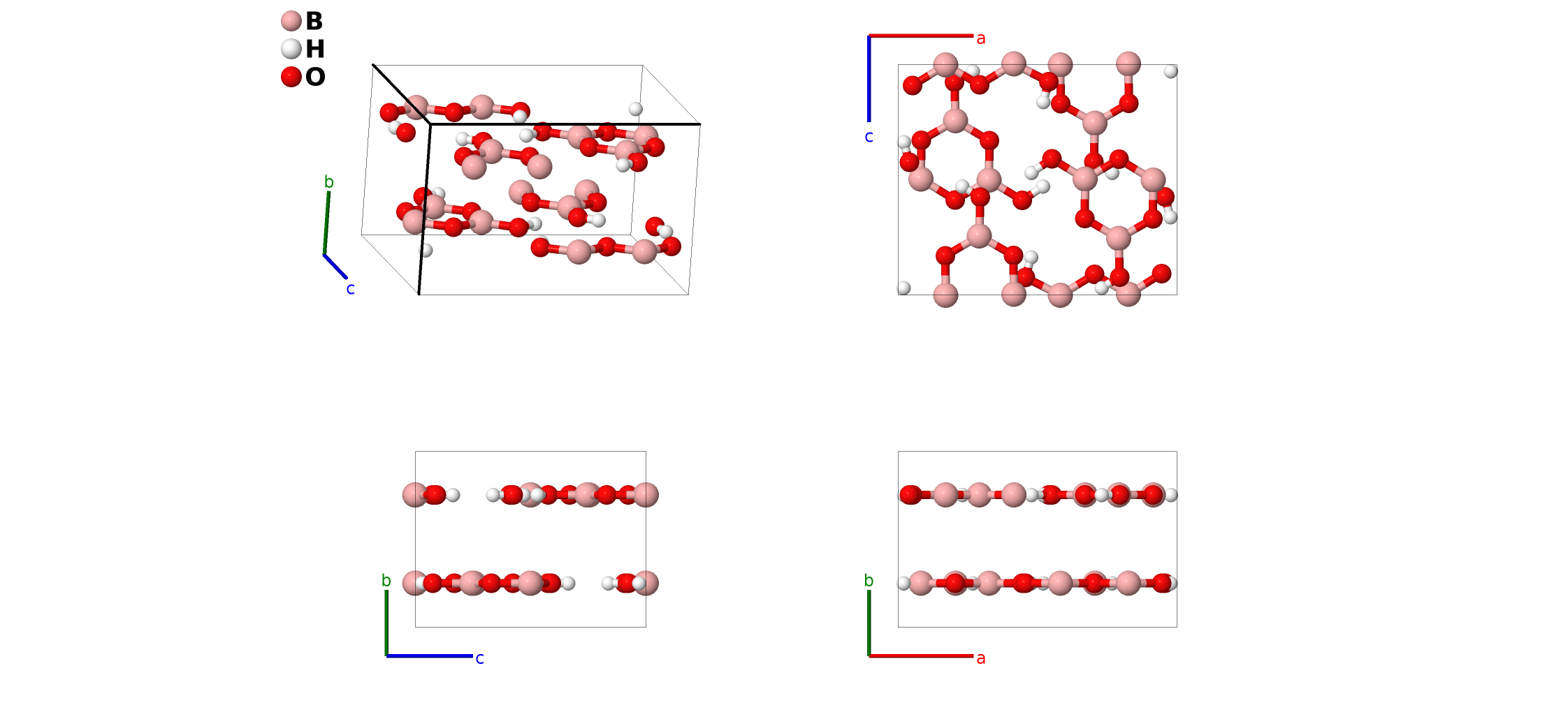 | $\mathbf{B_{21}}$ | = | $x_{6} \, \mathbf{a}_{1}+\frac{1}{4} \, \mathbf{a}_{2}+z_{6} \, \mathbf{a}_{3}$ | = | $a x_{6} \,\mathbf{\hat{x}}+\frac{1}{4}b \,\mathbf{\hat{y}}+c z_{6} \,\mathbf{\hat{z}}$ | (4c) | H III |