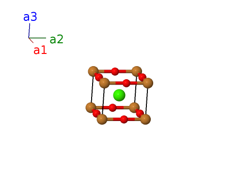 | $\mathbf{B_{2}}$ | = | $\frac{1}{2} \, \mathbf{a}_{1}+\frac{1}{2} \, \mathbf{a}_{2}+\frac{1}{2} \, \mathbf{a}_{3}$ | = | $\frac{1}{2}a \,\mathbf{\hat{x}}+\frac{1}{2}a \,\mathbf{\hat{y}}+\frac{1}{2}c \,\mathbf{\hat{z}}$ | (1d) | Cu I |