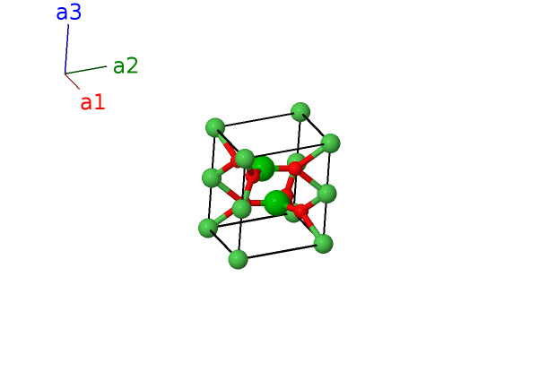 | $\mathbf{B_{8}}$ | = | $- x_{3} \, \mathbf{a}_{1}- 2 x_{3} \, \mathbf{a}_{2}+\frac{3}{4} \, \mathbf{a}_{3}$ | = | $- \frac{3}{2}a x_{3} \,\mathbf{\hat{x}}- \frac{\sqrt{3}}{2}a x_{3} \,\mathbf{\hat{y}}+\frac{3}{4}c \,\mathbf{\hat{z}}$ | (6h) | O I |
