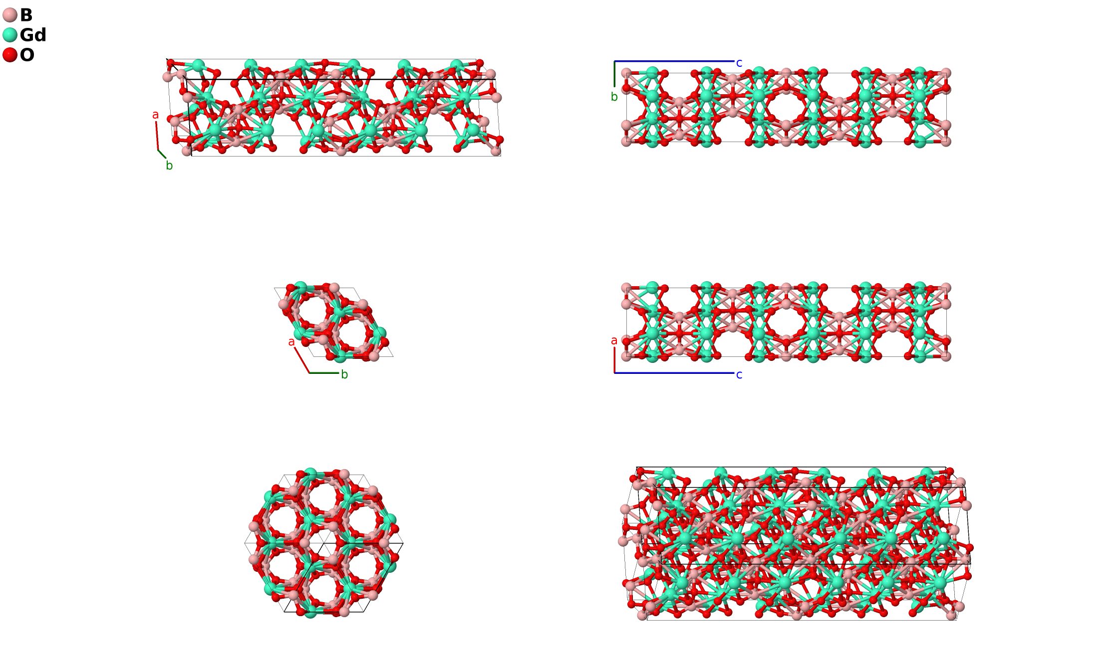 • (Ren, 1999) found two structures for GdBO$_{3}$: this low-temperature rhombohedral structure, and a high-temperature hexagonal structure.
