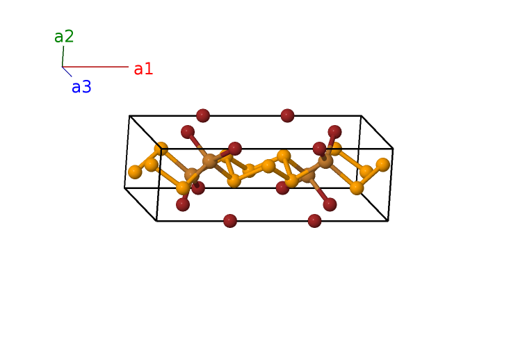 | $\mathbf{B_{6}}$ | = | $\frac{1}{4} \, \mathbf{a}_{1}- y_{2} \, \mathbf{a}_{2}+\frac{3}{4} \, \mathbf{a}_{3}$ | = | $\frac{1}{4}a \,\mathbf{\hat{x}}- b y_{2} \,\mathbf{\hat{y}}+\frac{3}{4}c \,\mathbf{\hat{z}}$ | (4g) | Cu I |