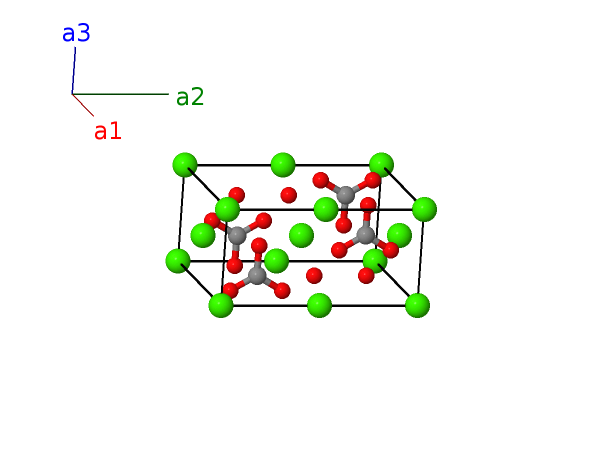 | $\mathbf{B_{4}}$ | = | $\frac{1}{2} \, \mathbf{a}_{1}+\frac{1}{2} \, \mathbf{a}_{2}+\frac{1}{2} \, \mathbf{a}_{3}$ | = | $\frac{1}{2}a \,\mathbf{\hat{x}}+\frac{1}{2}b \,\mathbf{\hat{y}}+\frac{1}{2}c \,\mathbf{\hat{z}}$ | (4a) | Ca I |