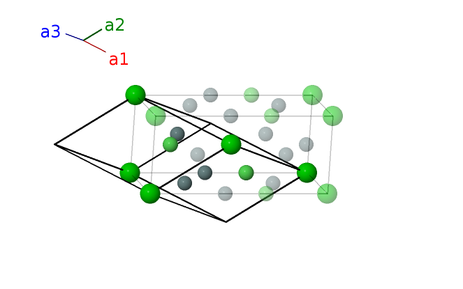 \[ \begin{array}{ccc} \mathbf{a_{1}}&=&- \frac{1}{2}a \,\mathbf{\hat{x}}+\frac{1}{2}a \,\mathbf{\hat{y}}+\frac{1}{2}c \,\mathbf{\hat{z}}\\\mathbf{a_{2}}&=&\frac{1}{2}a \,\mathbf{\hat{x}}- \frac{1}{2}a \,\mathbf{\hat{y}}+\frac{1}{2}c \,\mathbf{\hat{z}}\\\mathbf{a_{3}}&=&\frac{1}{2}a \,\mathbf{\hat{x}}+\frac{1}{2}a \,\mathbf{\hat{y}}- \frac{1}{2}c \,\mathbf{\hat{z}} \end{array}\]