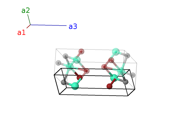 | $\mathbf{B_{3}}$ | = | $x_{2} \, \mathbf{a}_{1}+x_{2} \, \mathbf{a}_{2}+z_{2} \, \mathbf{a}_{3}$ | = | $\left(a x_{2} + c z_{2} \cos{\beta}\right) \,\mathbf{\hat{x}}+c z_{2} \sin{\beta} \,\mathbf{\hat{z}}$ | (4i) | C I |