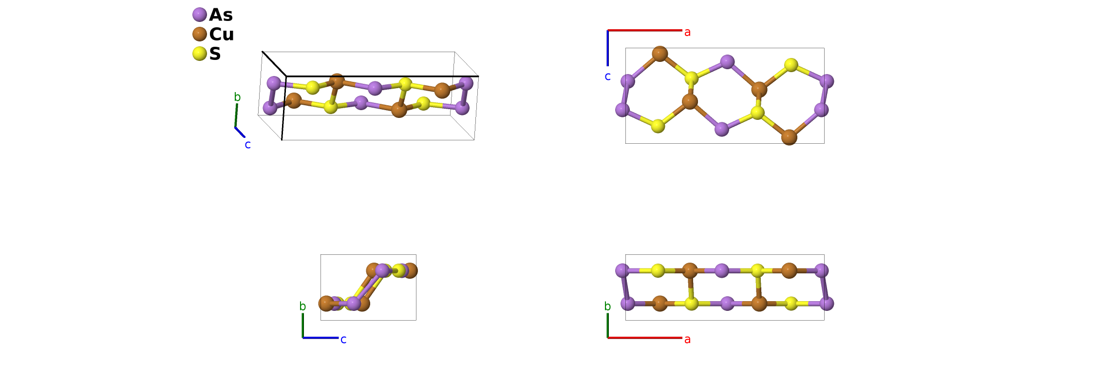 | $\mathbf{B_{5}}$ | = | $x_{2} \, \mathbf{a}_{1}+\frac{1}{4} \, \mathbf{a}_{2}+z_{2} \, \mathbf{a}_{3}$ | = | $a x_{2} \,\mathbf{\hat{x}}+\frac{1}{4}b \,\mathbf{\hat{y}}+c z_{2} \,\mathbf{\hat{z}}$ | (4c) | Cu I |
