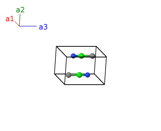 | $\mathbf{B_{3}}$ | = | $\frac{1}{4} \, \mathbf{a}_{1}+\frac{1}{4} \, \mathbf{a}_{2}+z_{2} \, \mathbf{a}_{3}$ | = | $\frac{1}{4}a \,\mathbf{\hat{x}}+\frac{1}{4}b \,\mathbf{\hat{y}}+c z_{2} \,\mathbf{\hat{z}}$ | (2a) | Cl I |