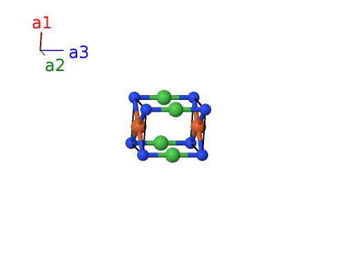 | $\mathbf{B_{3}}$ | = | $\frac{1}{2} \, \mathbf{a}_{1}+\frac{1}{2} \, \mathbf{a}_{2}$ | = | $\frac{1}{2}a \,\mathbf{\hat{x}}+\frac{1}{2}a \,\mathbf{\hat{y}}$ | (1c) | Fe I |
