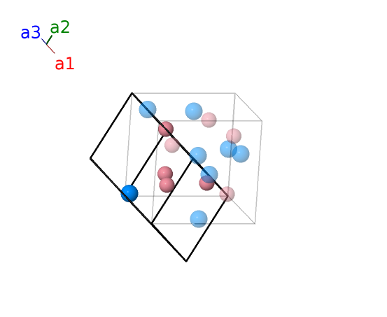 | $\mathbf{B_{3}}$ | = | $- \left(2 x_{1} - \frac{1}{2}\right) \, \mathbf{a}_{2}+\frac{1}{2} \, \mathbf{a}_{3}$ | = | $- a \left(x_{1} - \frac{1}{2}\right) \,\mathbf{\hat{x}}+a x_{1} \,\mathbf{\hat{y}}- a x_{1} \,\mathbf{\hat{z}}$ | (8a) | Co I |