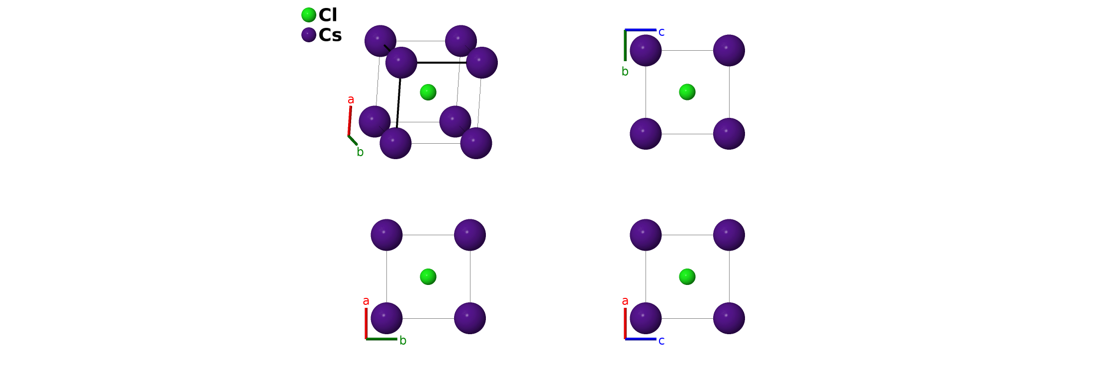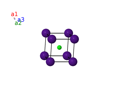 | $\mathbf{B_{2}}$ | = | $\frac{1}{2} \, \mathbf{a}_{1}+\frac{1}{2} \, \mathbf{a}_{2}+\frac{1}{2} \, \mathbf{a}_{3}$ | = | $\frac{1}{2}a \,\mathbf{\hat{x}}+\frac{1}{2}a \,\mathbf{\hat{y}}+\frac{1}{2}a \,\mathbf{\hat{z}}$ | (1b) | Cs I |