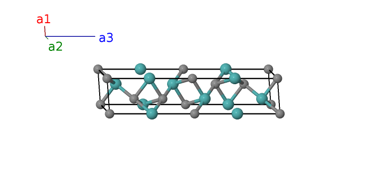 | $\mathbf{B_{12}}$ | = | $\frac{1}{3} \, \mathbf{a}_{1}+\frac{2}{3} \, \mathbf{a}_{2}- \left(z_{4} - \frac{1}{2}\right) \, \mathbf{a}_{3}$ | = | $\frac{1}{2}a \,\mathbf{\hat{x}}+\frac{\sqrt{3}}{6}a \,\mathbf{\hat{y}}- c \left(z_{4} - \frac{1}{2}\right) \,\mathbf{\hat{z}}$ | (4f) | Mo II |