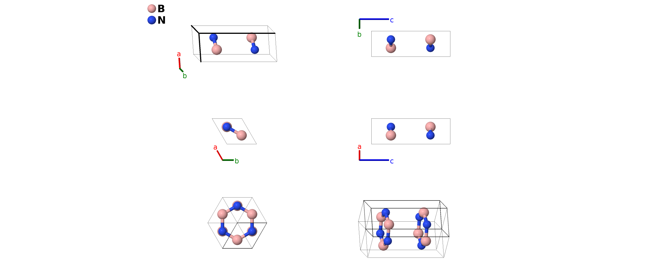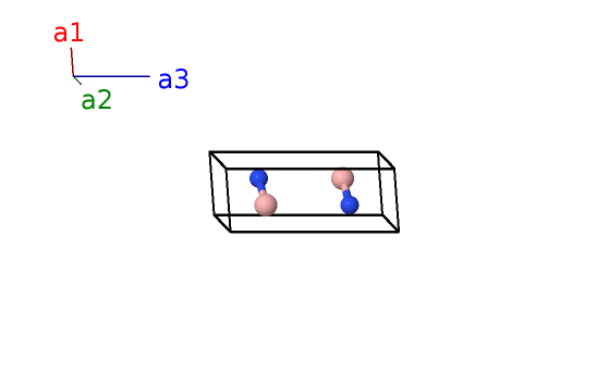 | $\mathbf{B_{3}}$ | = | $\frac{1}{3} \, \mathbf{a}_{1}+\frac{2}{3} \, \mathbf{a}_{2}+\frac{3}{4} \, \mathbf{a}_{3}$ | = | $\frac{1}{2}a \,\mathbf{\hat{x}}+\frac{\sqrt{3}}{6}a \,\mathbf{\hat{y}}+\frac{3}{4}c \,\mathbf{\hat{z}}$ | (2d) | N I |