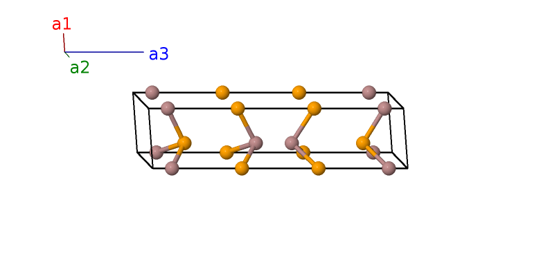 | $\mathbf{B_{5}}$ | = | $\frac{1}{3} \, \mathbf{a}_{1}+\frac{2}{3} \, \mathbf{a}_{2}+z_{3} \, \mathbf{a}_{3}$ | = | $\frac{1}{2}a \,\mathbf{\hat{x}}+\frac{\sqrt{3}}{6}a \,\mathbf{\hat{y}}+c z_{3} \,\mathbf{\hat{z}}$ | (2h) | Ga II |