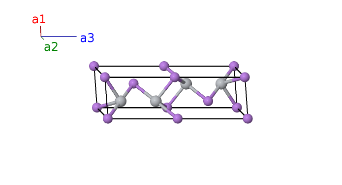 | $\mathbf{B_{3}}$ | = | $\frac{1}{3} \, \mathbf{a}_{1}+\frac{2}{3} \, \mathbf{a}_{2}+\frac{1}{4} \, \mathbf{a}_{3}$ | = | $\frac{1}{2}a \,\mathbf{\hat{x}}+\frac{\sqrt{3}}{6}a \,\mathbf{\hat{y}}+\frac{1}{4}c \,\mathbf{\hat{z}}$ | (2c) | As II |
