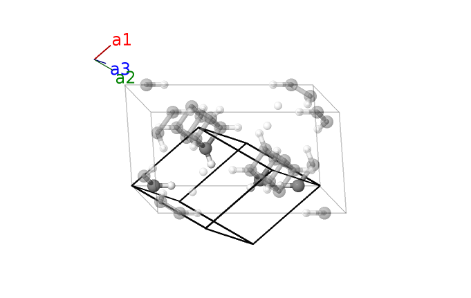 | $\mathbf{B_{13}}$ | = | $y_{4} \, \mathbf{a}_{1}+z_{4} \, \mathbf{a}_{2}+x_{4} \, \mathbf{a}_{3}$ | = | $- \frac{1}{2}a \left(x_{4} - y_{4}\right) \,\mathbf{\hat{x}}- \frac{\sqrt{3}}{6}a \left(x_{4} + y_{4} - 2 z_{4}\right) \,\mathbf{\hat{y}}+\frac{1}{3}c \left(x_{4} + y_{4} + z_{4}\right) \,\mathbf{\hat{z}}$ | (6f) | H II |