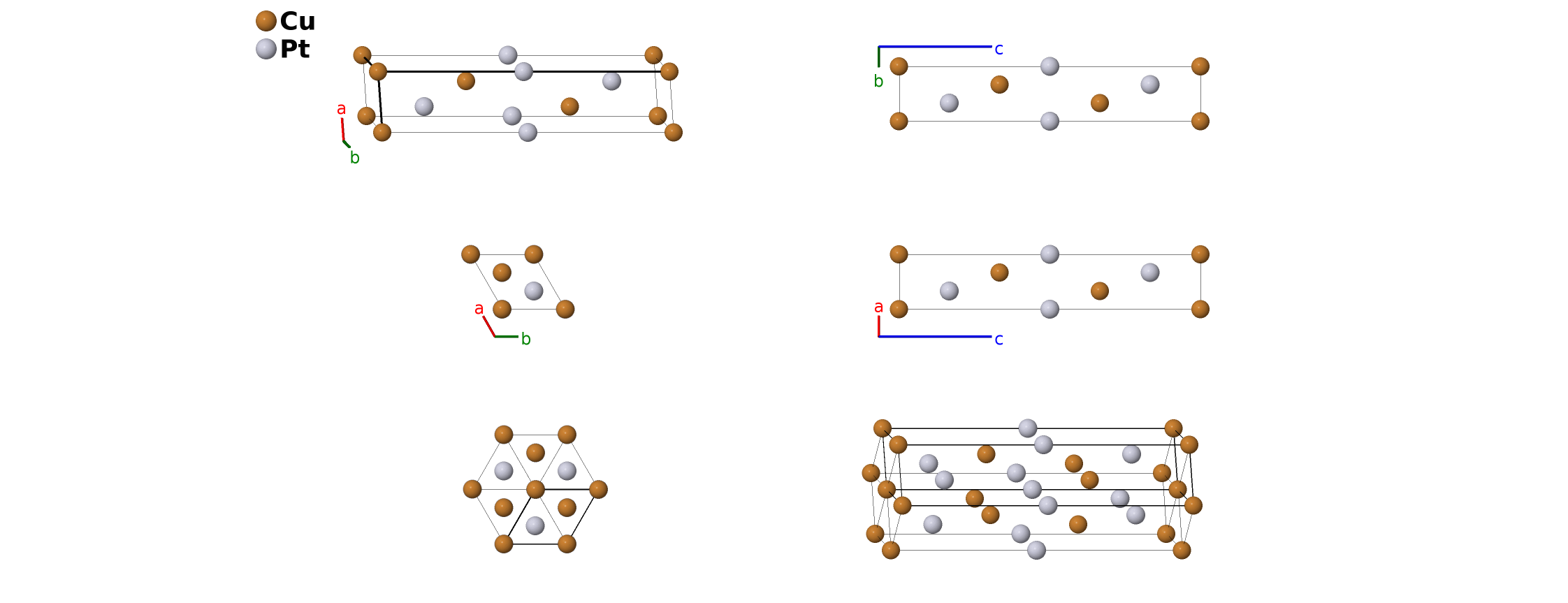 P. Villars, K. Cenzual, J. Daams, R. Gladyshevskii, O. Shcherban, V. Dubenskyy, N. Melnichenko-Koblyuk, O. Pavlyuk, I. Savysyuk, S. Stoyko, and L. Sysa, Structure Types. Part 5: Space Groups (173) P63- (166) R-3m $\cdot$ CuPt: Datasheet from Landolt-Börnstein - Group III Condensed Matter $\cdot$ Volume 43A5: Structure Types. Part 5: Space Groups (173) P63 - (166) R-3m in SpringerMaterials, doi:10.1007/978-3-540-46933-9_359. Copyright 2007 Springer-Verlag.