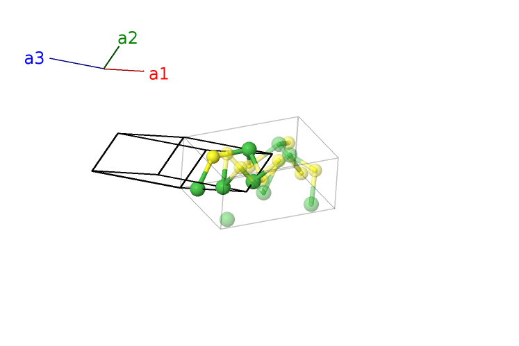 | $\mathbf{B_{4}}$ | = | $x_{2} \, \mathbf{a}_{1}+x_{2} \, \mathbf{a}_{2}+z_{2} \, \mathbf{a}_{3}$ | = | $\frac{1}{2}a \left(x_{2} - z_{2}\right) \,\mathbf{\hat{x}}+\frac{\sqrt{3}}{6}a \left(x_{2} - z_{2}\right) \,\mathbf{\hat{y}}+\frac{1}{3}c \left(2 x_{2} + z_{2}\right) \,\mathbf{\hat{z}}$ | (3b) | S I |