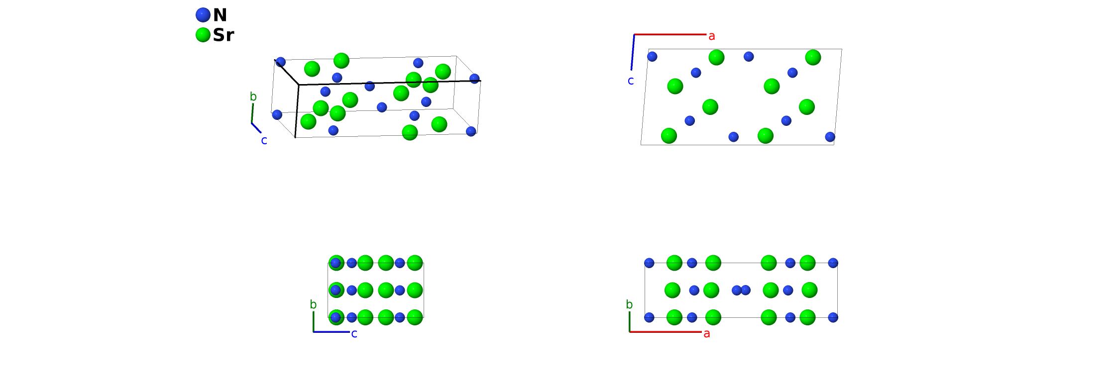| $\mathbf{B_{5}}$ | = | $x_{3} \, \mathbf{a}_{1}+x_{3} \, \mathbf{a}_{2}+z_{3} \, \mathbf{a}_{3}$ | = | $\left(a x_{3} + c z_{3} \cos{\beta}\right) \,\mathbf{\hat{x}}+c z_{3} \sin{\beta} \,\mathbf{\hat{z}}$ | (4i) | Sr I |