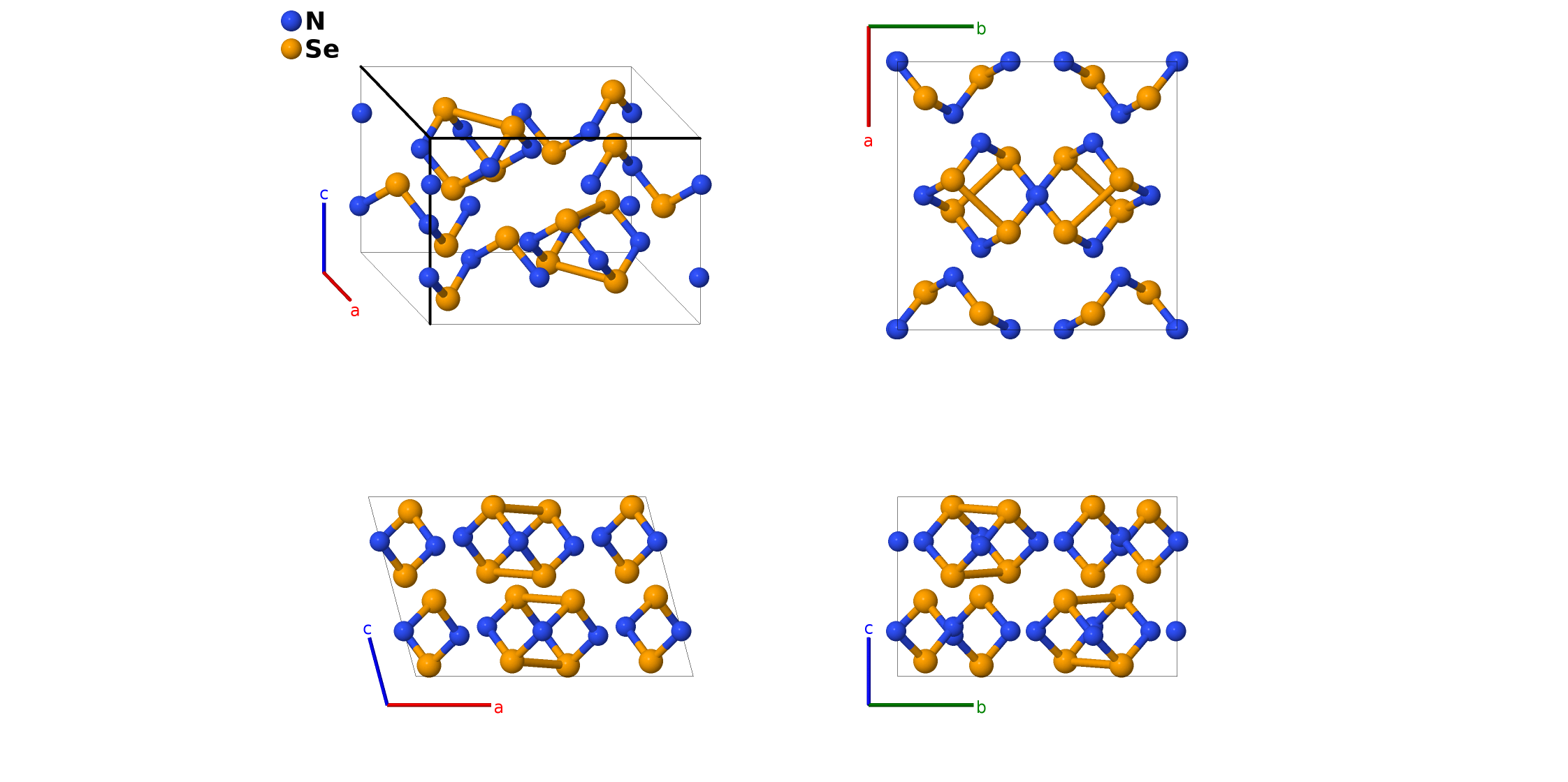 | $\mathbf{B_{12}}$ | = | $\left(x_{4} + y_{4}\right) \, \mathbf{a}_{1}+\left(x_{4} - y_{4}\right) \, \mathbf{a}_{2}+\left(z_{4} + \frac{1}{2}\right) \, \mathbf{a}_{3}$ | = | $\left(a x_{4} + c \left(z_{4} + \frac{1}{2}\right) \cos{\beta}\right) \,\mathbf{\hat{x}}- b y_{4} \,\mathbf{\hat{y}}+c \left(z_{4} + \frac{1}{2}\right) \sin{\beta} \,\mathbf{\hat{z}}$ | (8f) | Se I |