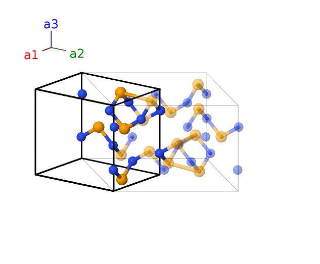 | $\mathbf{B_{4}}$ | = | $y_{2} \, \mathbf{a}_{1}- y_{2} \, \mathbf{a}_{2}+\frac{3}{4} \, \mathbf{a}_{3}$ | = | $\frac{3}{4}c \cos{\beta} \,\mathbf{\hat{x}}- b y_{2} \,\mathbf{\hat{y}}+\frac{3}{4}c \sin{\beta} \,\mathbf{\hat{z}}$ | (4e) | N II |