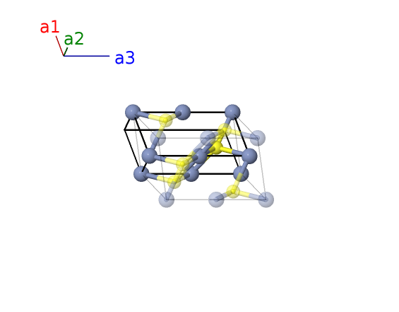 | $\mathbf{B_{3}}$ | = | $- y_{2} \, \mathbf{a}_{1}+y_{2} \, \mathbf{a}_{2}+\frac{1}{4} \, \mathbf{a}_{3}$ | = | $\frac{1}{4}c \cos{\beta} \,\mathbf{\hat{x}}+b y_{2} \,\mathbf{\hat{y}}+\frac{1}{4}c \sin{\beta} \,\mathbf{\hat{z}}$ | (4e) | S I |