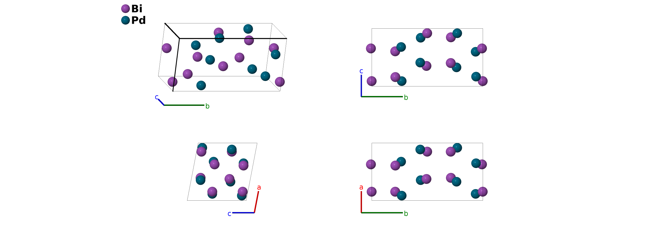| $\mathbf{B_{9}}$ | = | $x_{5} \, \mathbf{a}_{1}+y_{5} \, \mathbf{a}_{2}+z_{5} \, \mathbf{a}_{3}$ | = | $\left(a x_{5} + c z_{5} \cos{\beta}\right) \,\mathbf{\hat{x}}+b y_{5} \,\mathbf{\hat{y}}+c z_{5} \sin{\beta} \,\mathbf{\hat{z}}$ | (2a) | Pd I |