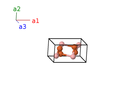 | $\mathbf{B_{5}}$ | = | $x_{2} \, \mathbf{a}_{1}+\frac{1}{4} \, \mathbf{a}_{2}+z_{2} \, \mathbf{a}_{3}$ | = | $a x_{2} \,\mathbf{\hat{x}}+\frac{1}{4}b \,\mathbf{\hat{y}}+c z_{2} \,\mathbf{\hat{z}}$ | (4c) | Fe I |