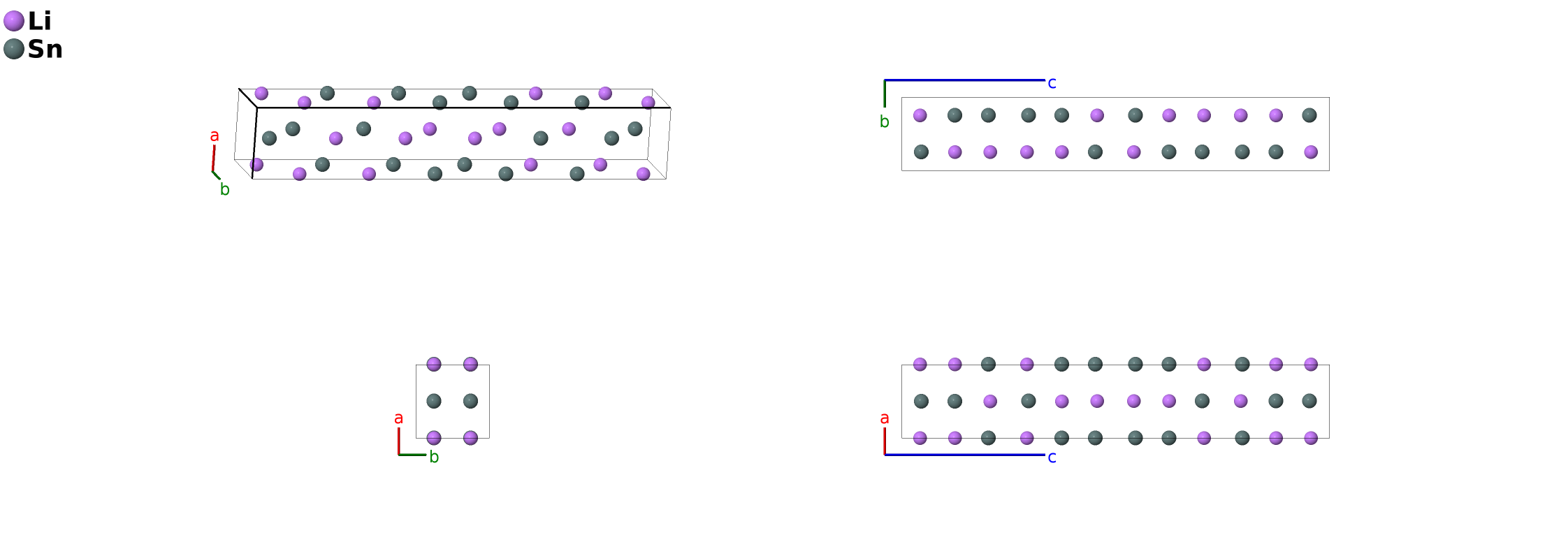 | $\mathbf{B_{6}}$ | = | $z_{3} \, \mathbf{a}_{1}+\left(z_{3} + \frac{1}{4}\right) \, \mathbf{a}_{2}+\frac{3}{4} \, \mathbf{a}_{3}$ | = | $\frac{1}{2}a \,\mathbf{\hat{x}}+\frac{1}{4}a \,\mathbf{\hat{y}}+c \left(z_{3} - \frac{1}{4}\right) \,\mathbf{\hat{z}}$ | (8e) | Li II |