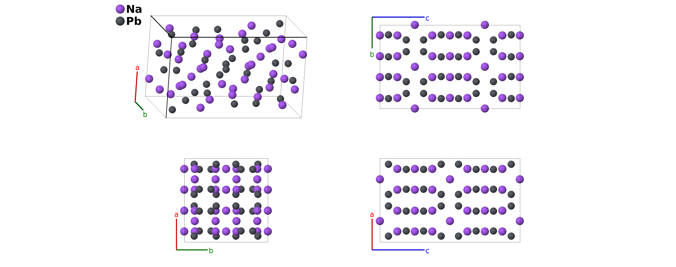 | $\mathbf{B_{4}}$ | = | $- \left(x_{1} - \frac{1}{4}\right) \, \mathbf{a}_{1}+\frac{1}{4} \, \mathbf{a}_{2}- \left(x_{1} - \frac{1}{2}\right) \, \mathbf{a}_{3}$ | = | $\frac{1}{4}a \,\mathbf{\hat{x}}- a \left(x_{1} - \frac{1}{4}\right) \,\mathbf{\hat{y}}$ | (16e) | Na I |