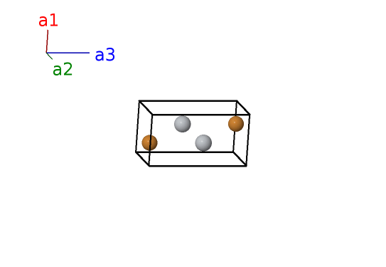 | $\mathbf{B_{2}}$ | = | $\frac{3}{4} \, \mathbf{a}_{1}+\frac{3}{4} \, \mathbf{a}_{2}- z_{1} \, \mathbf{a}_{3}$ | = | $\frac{3}{4}a \,\mathbf{\hat{x}}+\frac{3}{4}a \,\mathbf{\hat{y}}- c z_{1} \,\mathbf{\hat{z}}$ | (2c) | Cu I |