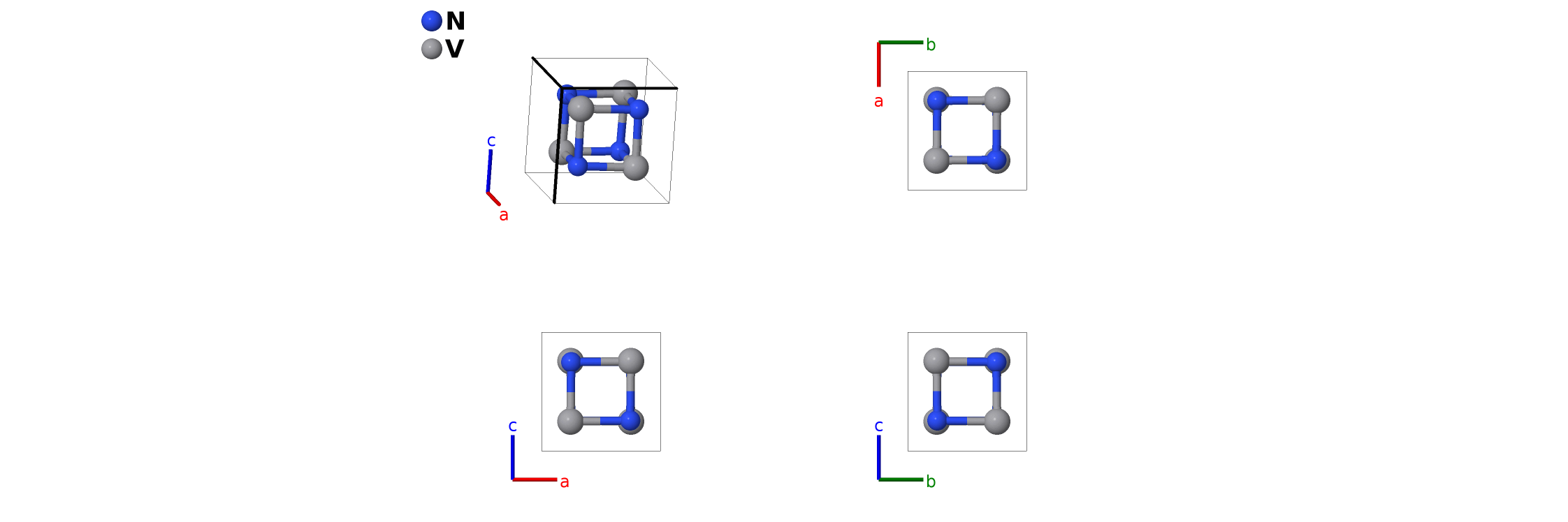 • F. Kubel, W. Lengauer, K. Yvon, K. Knorr, and A. Junod, Structural phase transition at 205 K in stoichiometric vanadium nitride, Phys. Rev. B 38, 12908–12912 (1988), doi:10.1103/PhysRevB.38.12908.