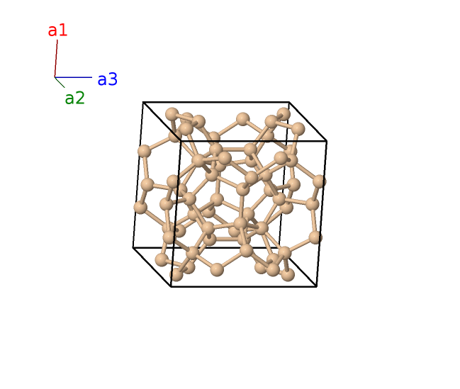 | $\mathbf{B_{41}}$ | = | $\frac{1}{2} \, \mathbf{a}_{1}- \left(z_{3} - \frac{1}{2}\right) \, \mathbf{a}_{2}- \left(y_{3} - \frac{1}{2}\right) \, \mathbf{a}_{3}$ | = | $\frac{1}{2}a \,\mathbf{\hat{x}}- a \left(z_{3} - \frac{1}{2}\right) \,\mathbf{\hat{y}}- a \left(y_{3} - \frac{1}{2}\right) \,\mathbf{\hat{z}}$ | (24k) | Si III |