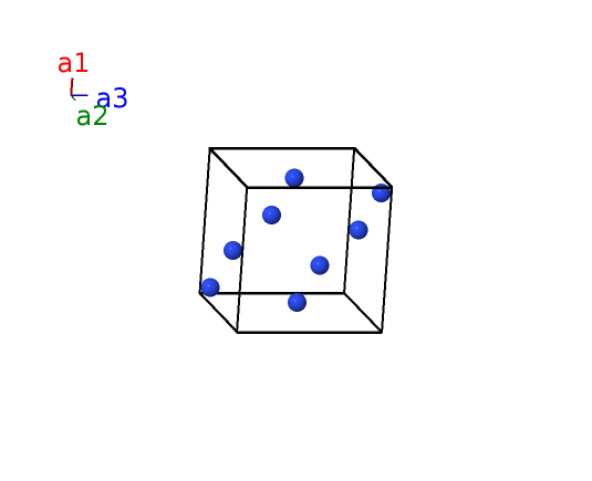 | $\mathbf{B_{8}}$ | = | $- \left(x_{1} - \frac{1}{2}\right) \, \mathbf{a}_{1}+\left(x_{1} + \frac{1}{2}\right) \, \mathbf{a}_{2}+x_{1} \, \mathbf{a}_{3}$ | = | $- a \left(x_{1} - \frac{1}{2}\right) \,\mathbf{\hat{x}}+a \left(x_{1} + \frac{1}{2}\right) \,\mathbf{\hat{y}}+a x_{1} \,\mathbf{\hat{z}}$ | (8c) | N I |