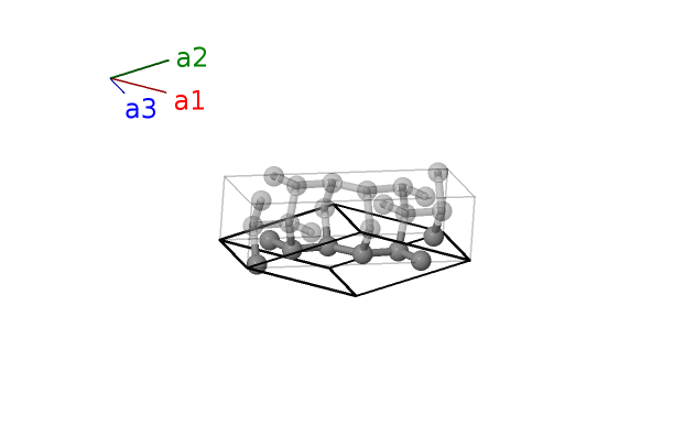 | $\mathbf{B_{3}}$ | = | $x_{2} \, \mathbf{a}_{1}+x_{2} \, \mathbf{a}_{2}+z_{2} \, \mathbf{a}_{3}$ | = | $\left(a x_{2} + c z_{2} \cos{\beta}\right) \,\mathbf{\hat{x}}+c z_{2} \sin{\beta} \,\mathbf{\hat{z}}$ | (4i) | C II |