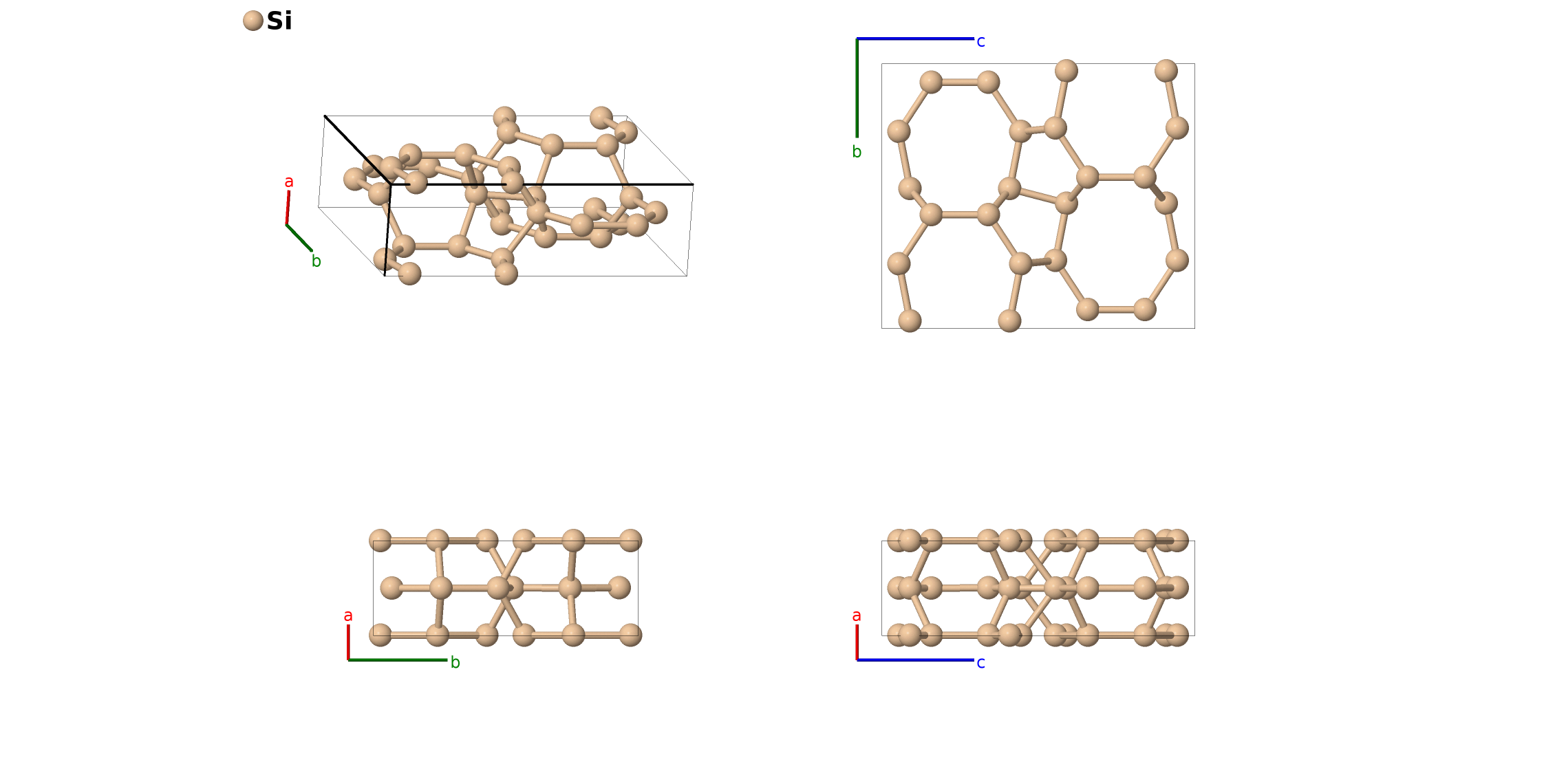 | $\mathbf{B_{9}}$ | = | $- y_{3} \, \mathbf{a}_{1}+y_{3} \, \mathbf{a}_{2}+z_{3} \, \mathbf{a}_{3}$ | = | $b y_{3} \,\mathbf{\hat{y}}+c z_{3} \,\mathbf{\hat{z}}$ | (8f) | Si III |