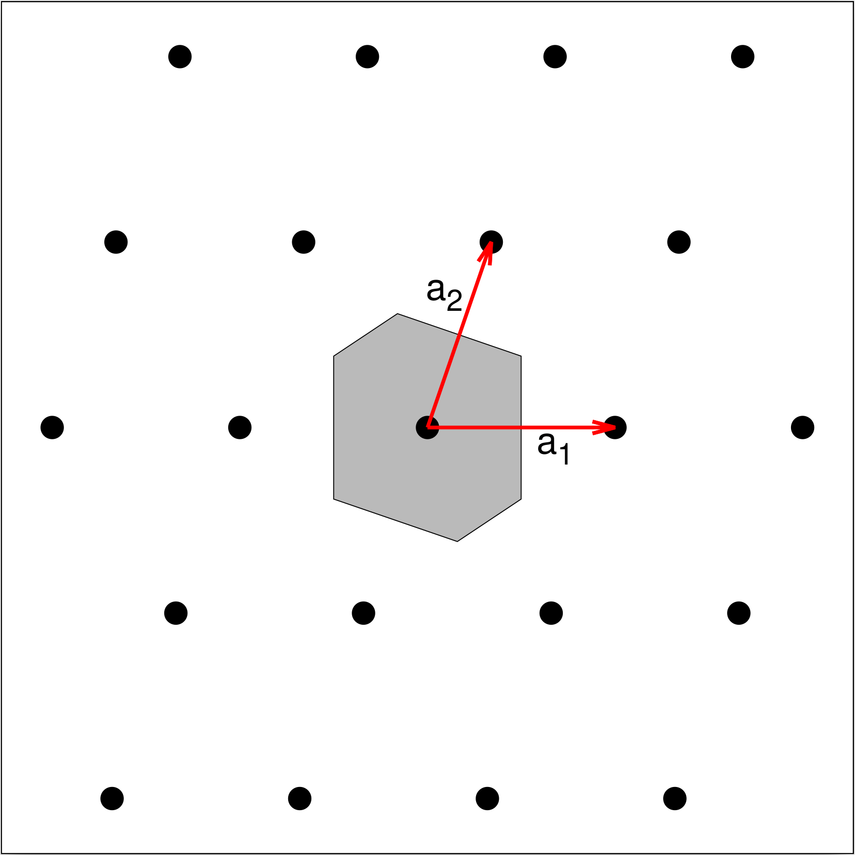 Wigner-Seitz cell for the system is shaded in gray.